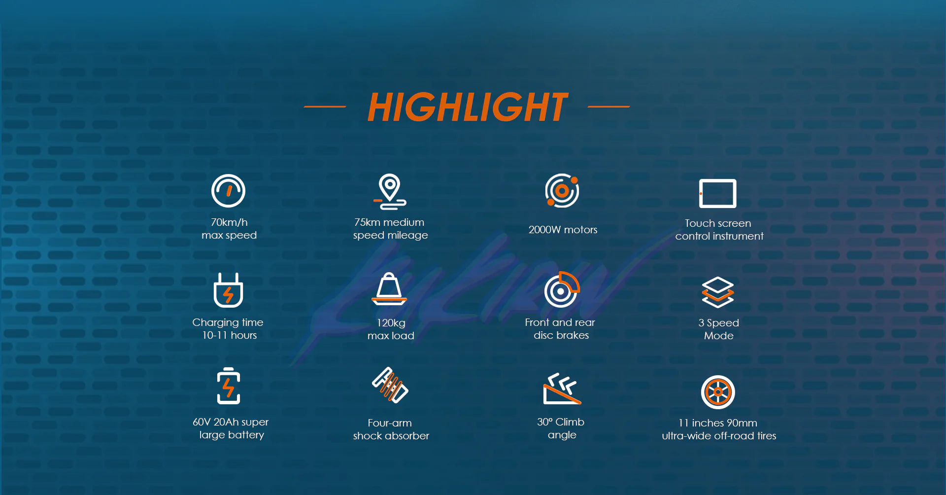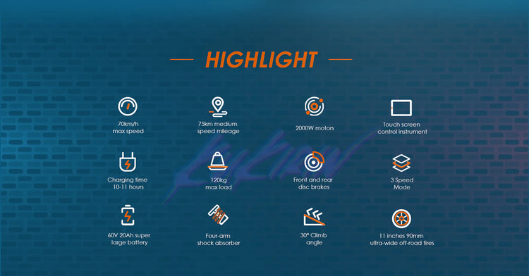 | Range | 59 Miles / 95 Km | Battery | 60V 35.2Ah |